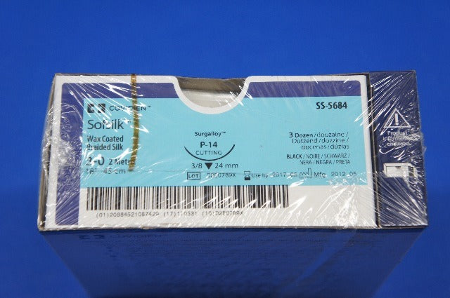 Covidien SS-5684 Sofsilk Wax Coated Braided Silk, 18", P-14, Size 3-0