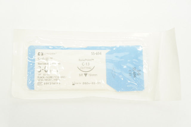 - Covidien SS-694 3-0 Sofsilk Wax Coated Braided, C-13 Cutting, 3/8 19mm, 18inch