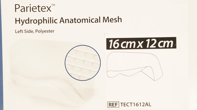 - Covidien TECT1612AL Parietex Hydrophilic Anatomical Mesh Left Side, 16cm x 12cm