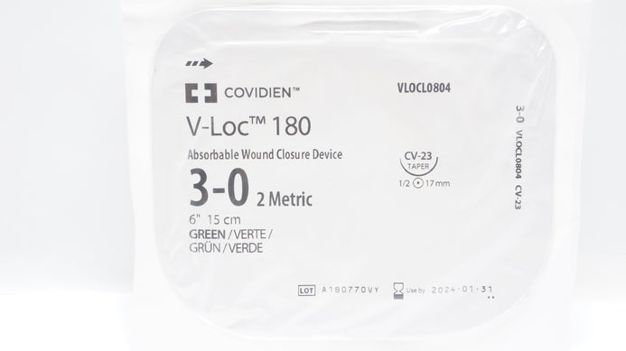 Covidien VLOCL0804 3-0 V-Loc 180 Wound Closure CV-23 Taper 1/2 17mm, 6inch (x)