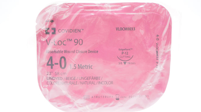 Covidien VLOCM0033 4-0 V-Loc 90 Absorbable Wound Closure Device P-12 Cutting 3/8 19mm 23inch