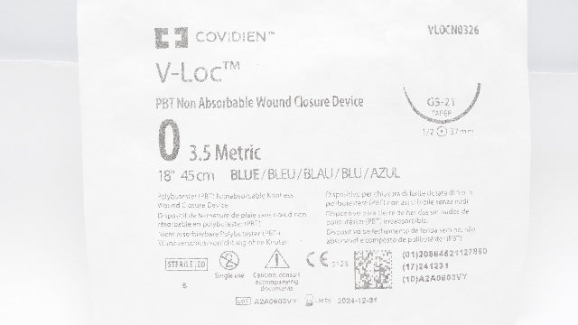 Covidien VLOCN0326 0 PBT Wound Closure Device GS-21 Taper 1/2c 37mm, 18inch