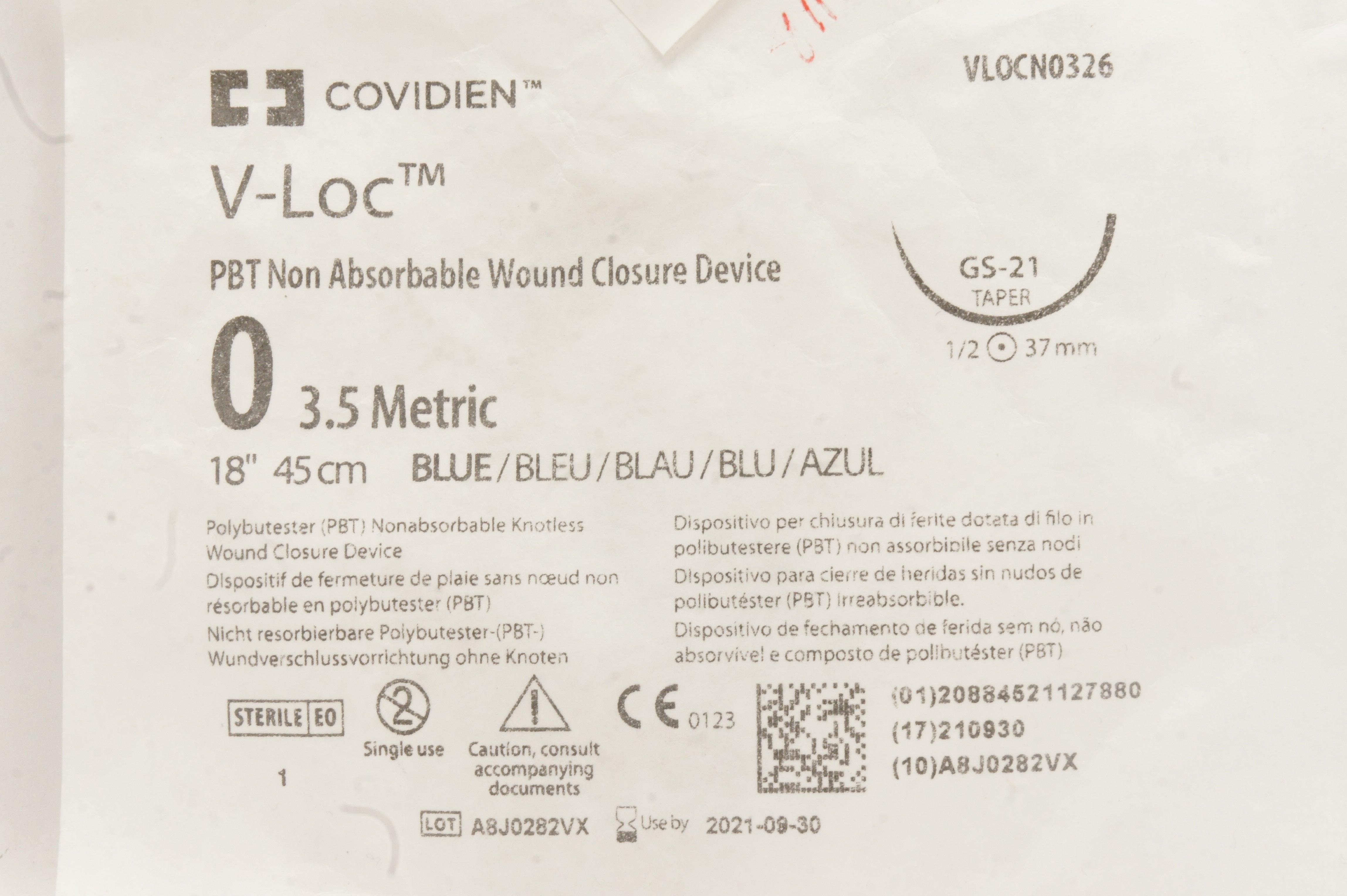 Covidien VLOCN0326 V-Loc PBT GS-21 Taper 1/2 37mm Non Absorbable Wound Closure Device 0 3.5 Metric 18inch 45cm