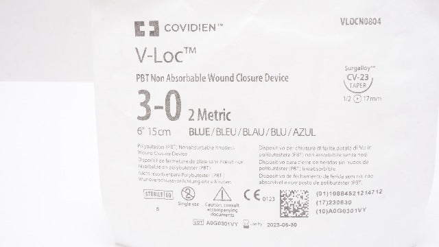 - Covidien VLOCN0804 3-0 V-Loc PBT Blue 6inch, CV-23 1/2c 17mm Taper (x)