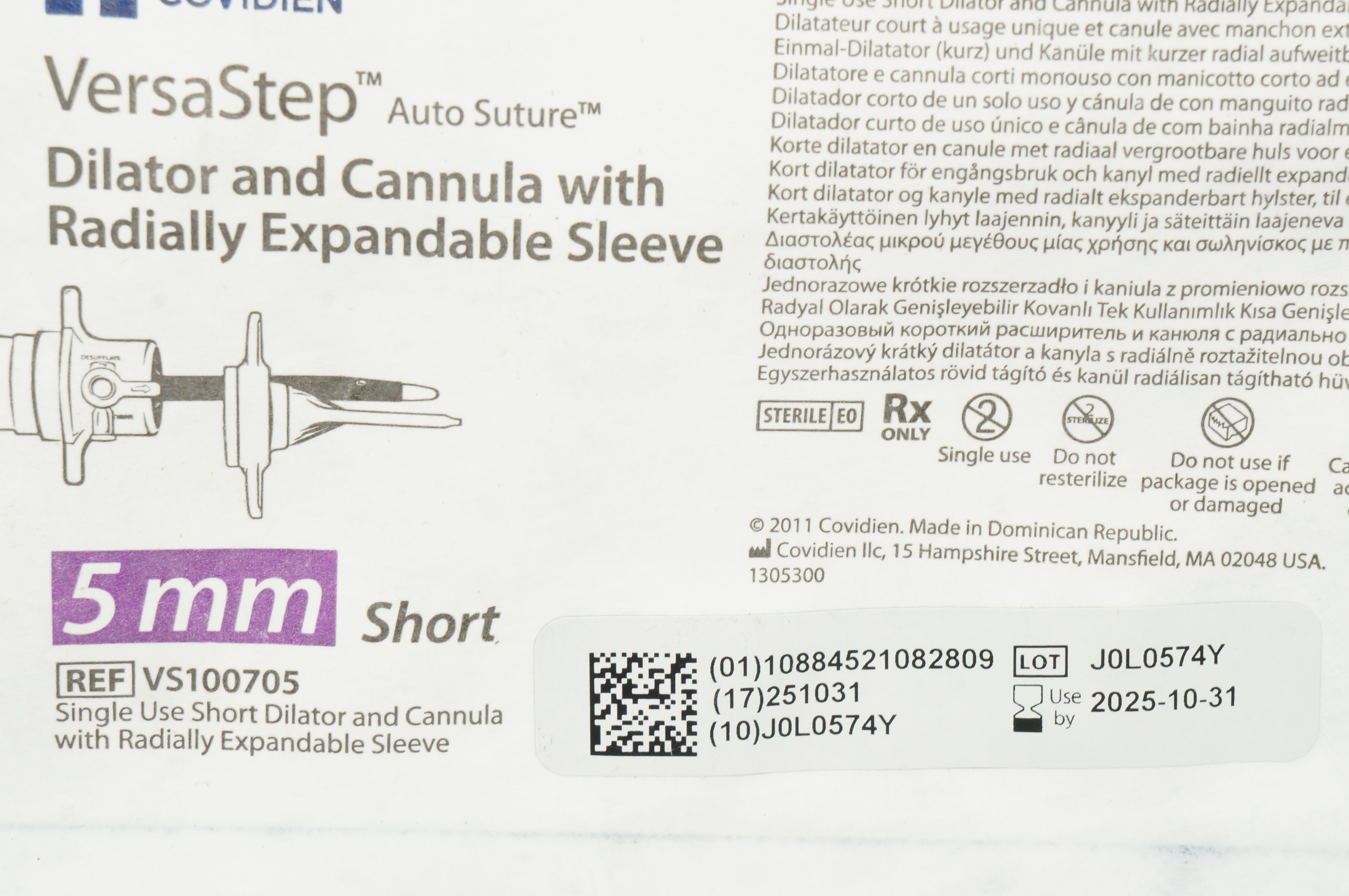 Covidien VS100705 VeraStep AutoSuture Dilator & Cannula w/Radially Expandable Sleeve Short 5mm