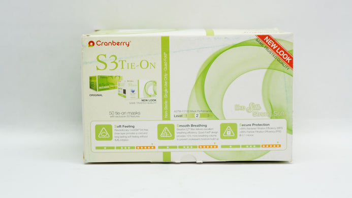- Cranberry S3050B, S3 Tie-On, Face Mask Level 2, Blue - Box of 50