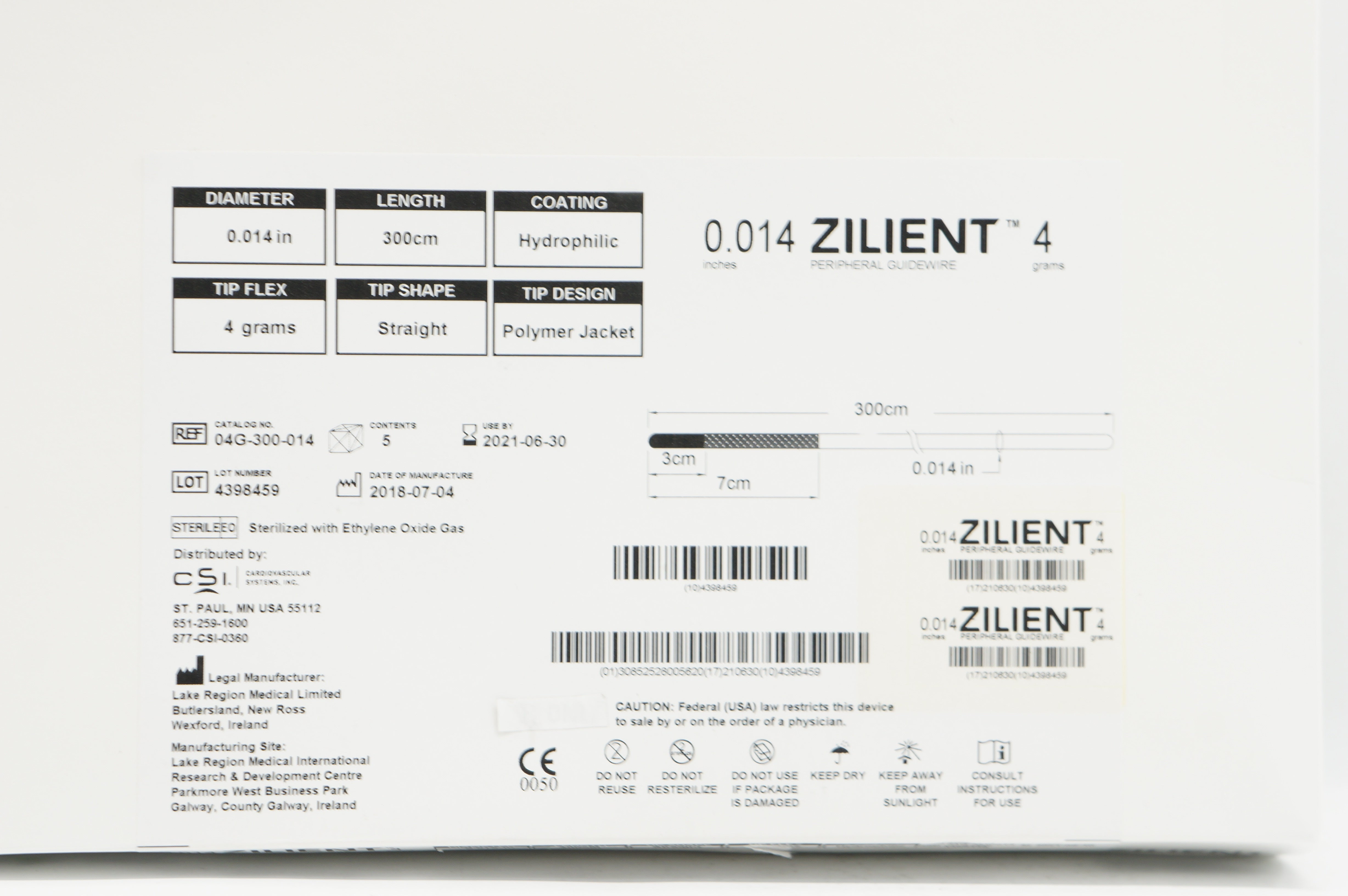 CSI 04G-300-014 Zilient Peripheral Guidewire 0.014inchx300cm - Box of 5 (x)