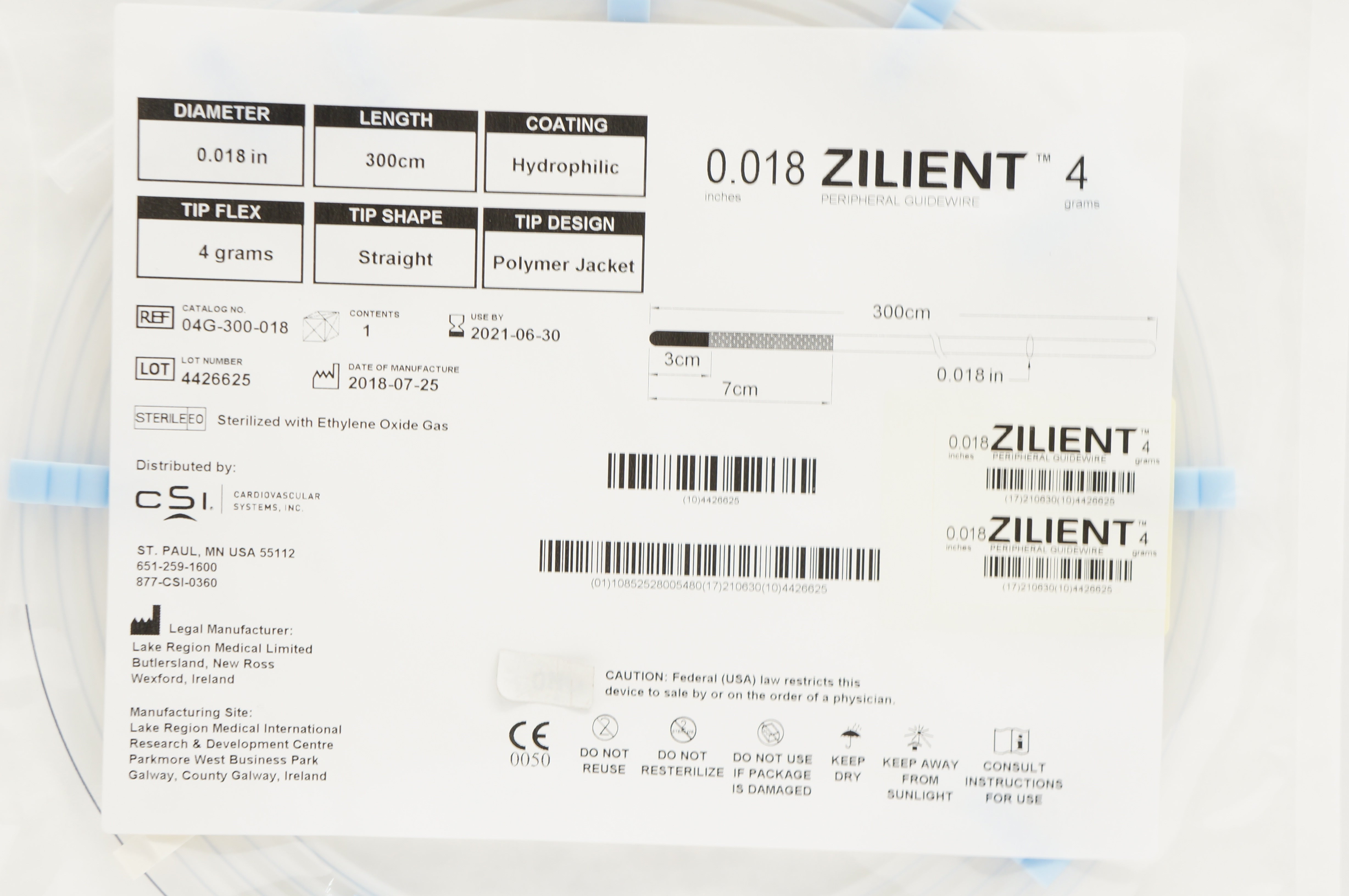 CSI 04G-300-018 Zilient Peripheral Guidewire Straight 4 x 300cm x 0.018inch (x)