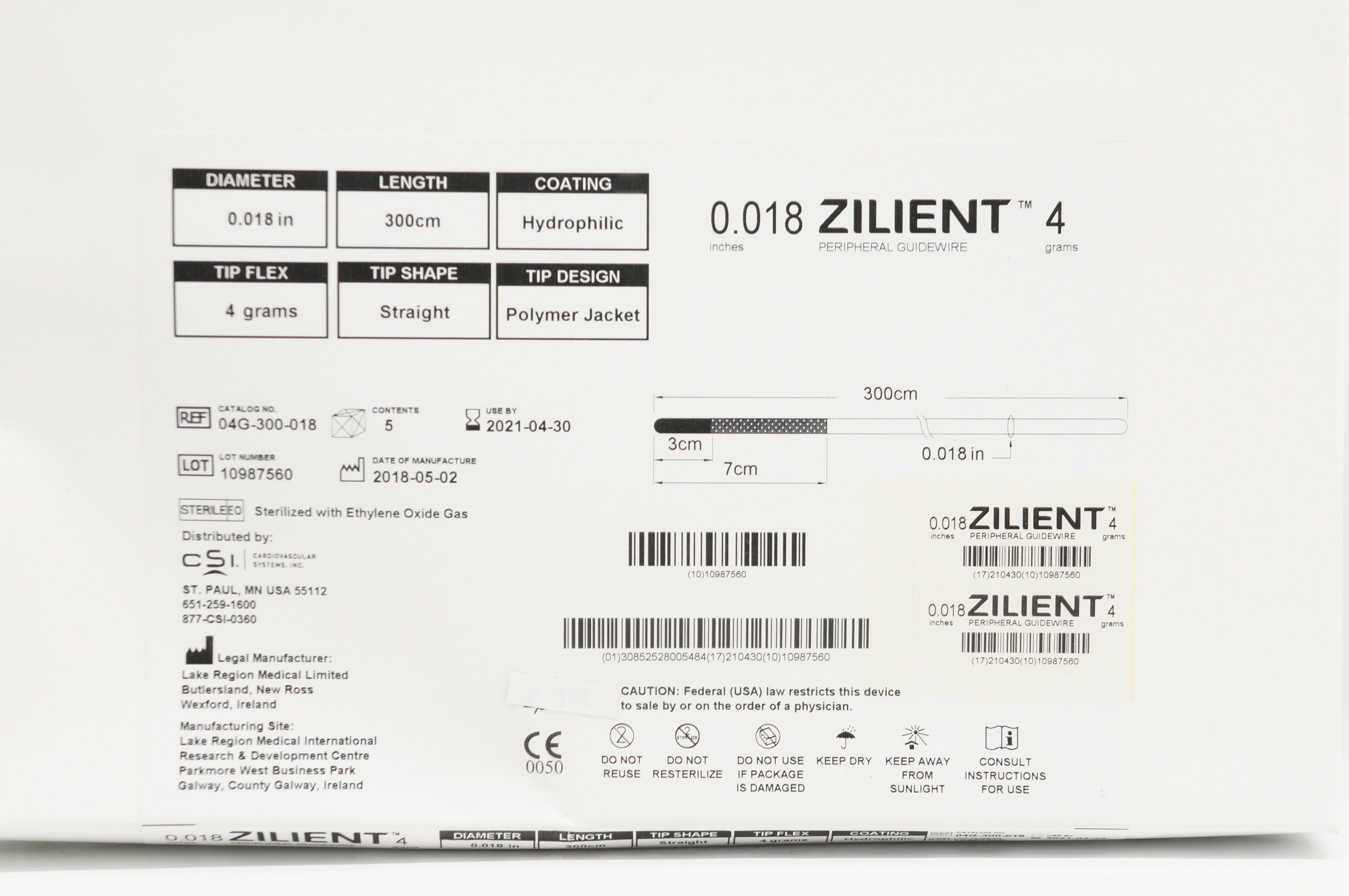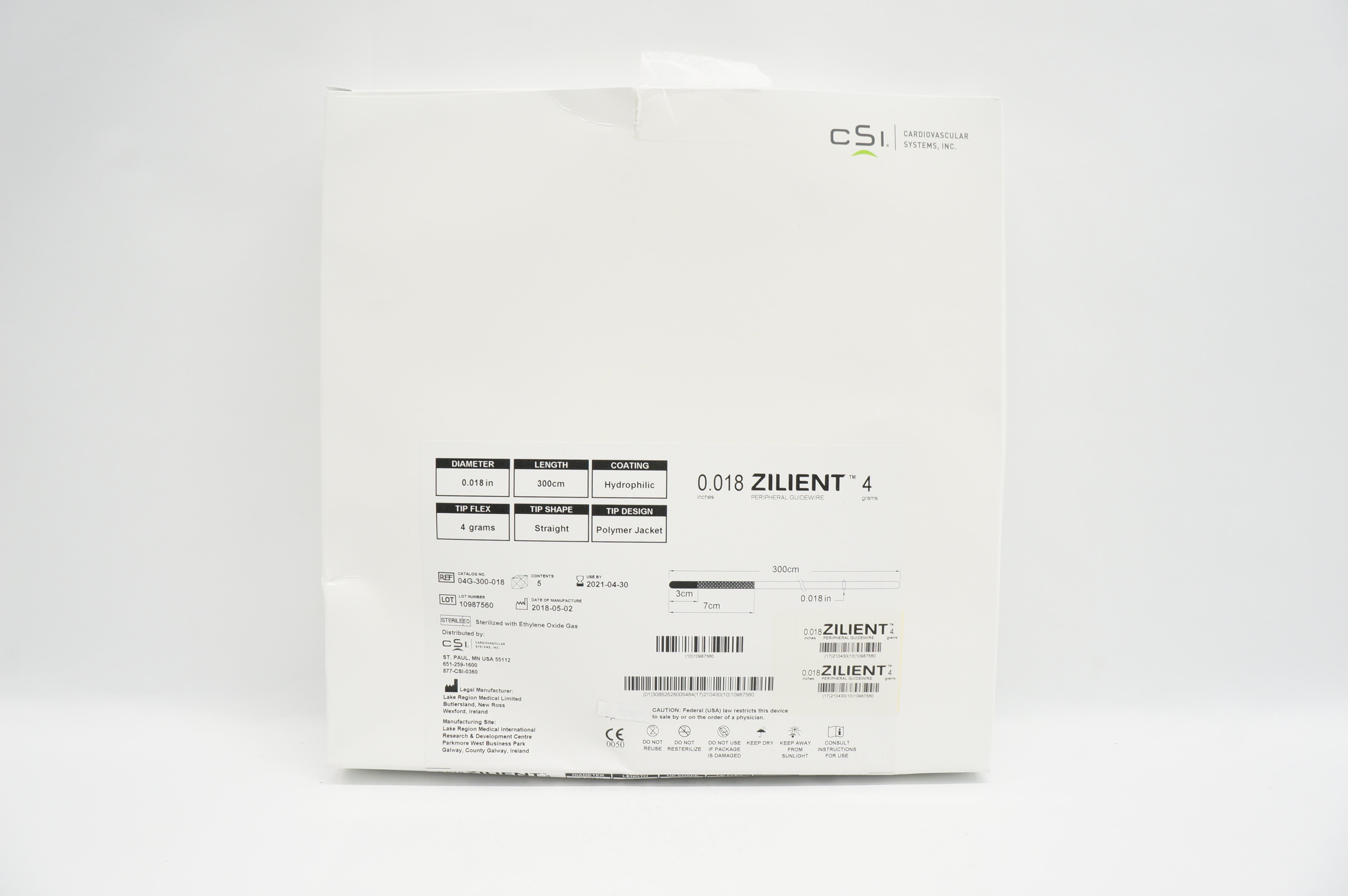 - CSI 04G-300-018 Zilient Peripheral Guidewire Straight 4x300cmx0.018in-Box of5(x)