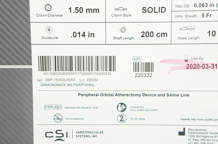 - CSI DBP-150SOLID200 Peripheral Orbital Atherectomy System 5Fr 200cm(x)