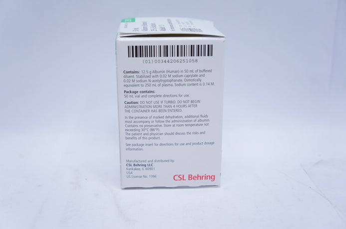 CSL Behring NSN 44206-251-05 Albumin (Human) 25% Solution AlbuRx 25, 50ml