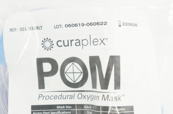 - Curaplex 301-0318LT Procedural Oxygen Mask Oral/Nasal/ 60 x 36mm, 20 x 12mm OD