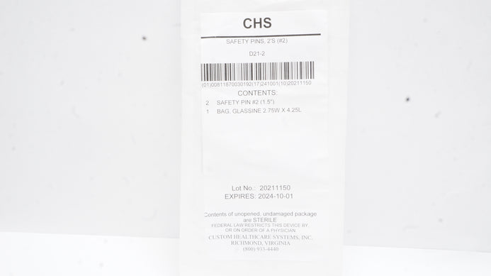 - Custom Healthcare Systems D21-2 Safety Pins 2'S (#2) 1.5inch