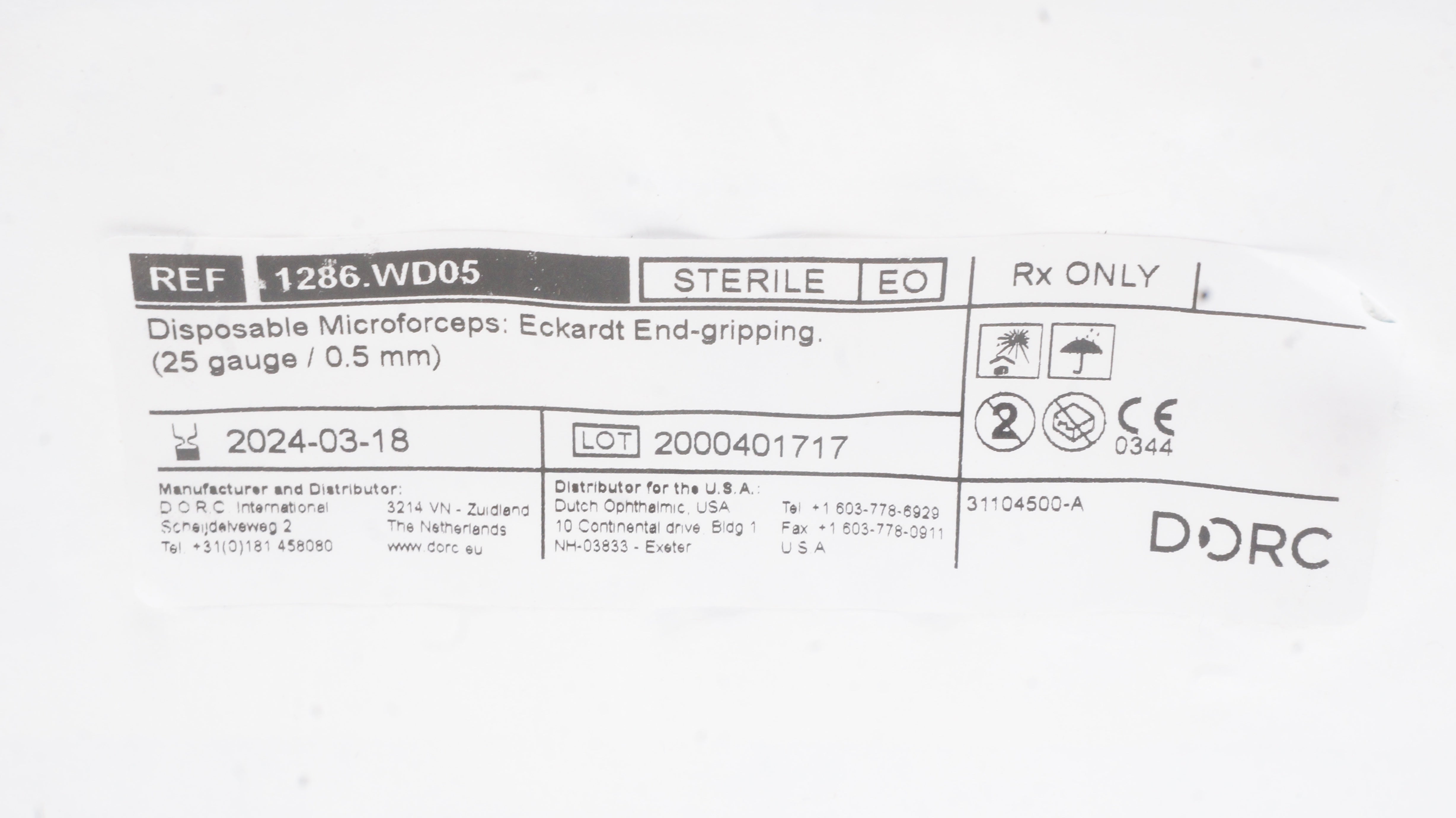 - D.O.R.C 1286.WD05 Disposable Microforceps Eckardt End-Gripping 25Ga/0.5mm (x)