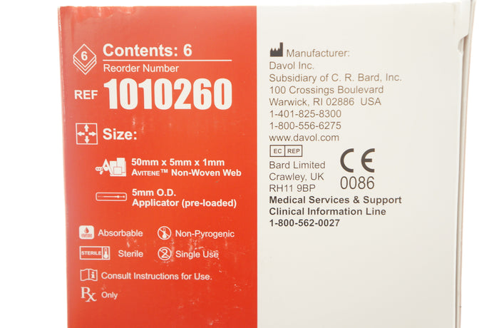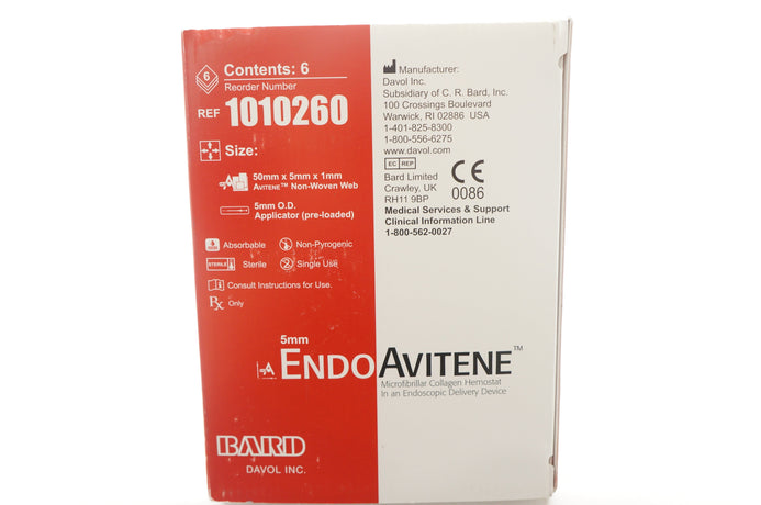 - Davol 1010260 Bard Endo Avitene Collagen Hemostat 50mm x5mm x1mm (x) - Box of 6