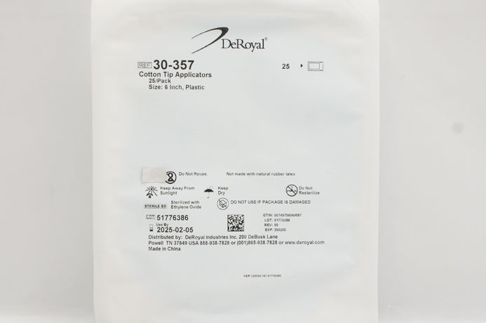 - De Royal 30-357 Cotton Tip Applicators, Size 6inch, Plastic - Pack of 25
