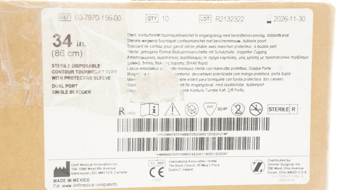- Delfi Medical 60-7970-156-00 Zimmer Contour Tourniquet Cuff w/Sleeve -Case of 10