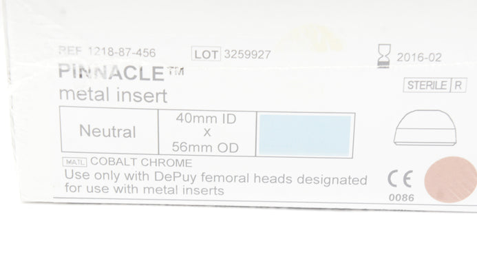 - DePuy 1218-87-456 Pinnacle Metal Insert Neutral 40mm ID x 56mm OD (x)