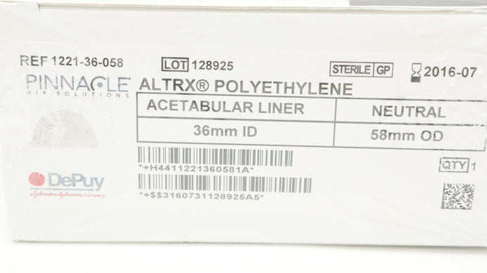 - DePuy 1221-36-058 Pinnacle ALTRX Polyethylene Neutral 36mm x 58mm (x)