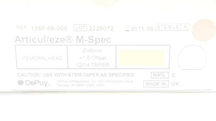 - DePuy 1365-68-000 Articul/EZE Femoral Head 48mm, +1.5, 12/14 Taper (x)