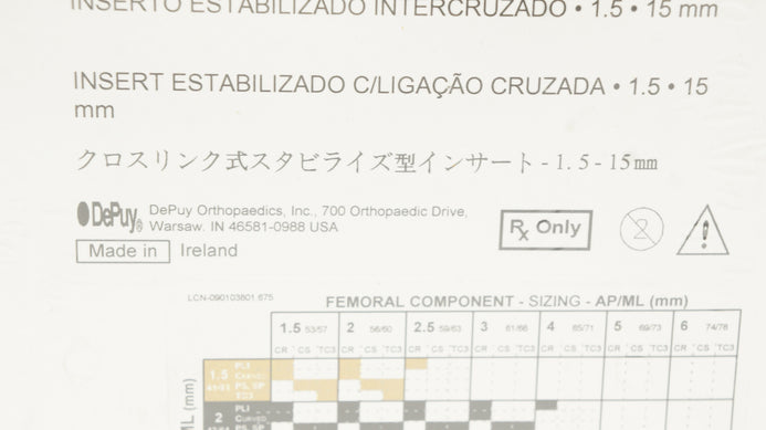 - DePuy 1581-20-115 Sigma Cross-Linked Stabilized Insert Size 1.5,15mm (X)
