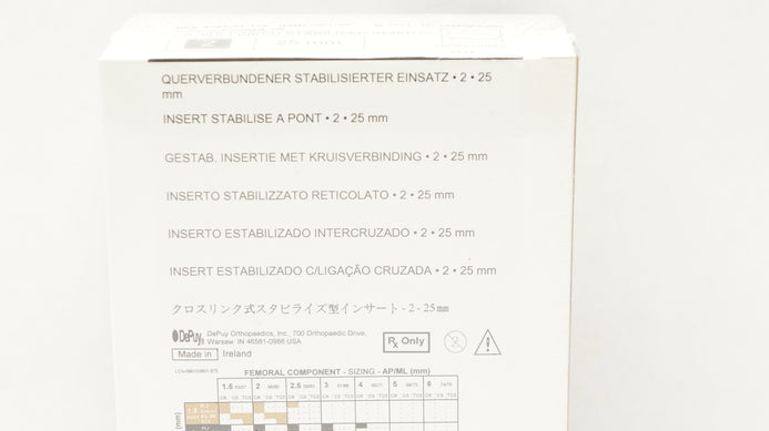 DePuy 1581-21-125 Sigma Cross Linked Stabilized Insert 25mm, Size 2 (x)
