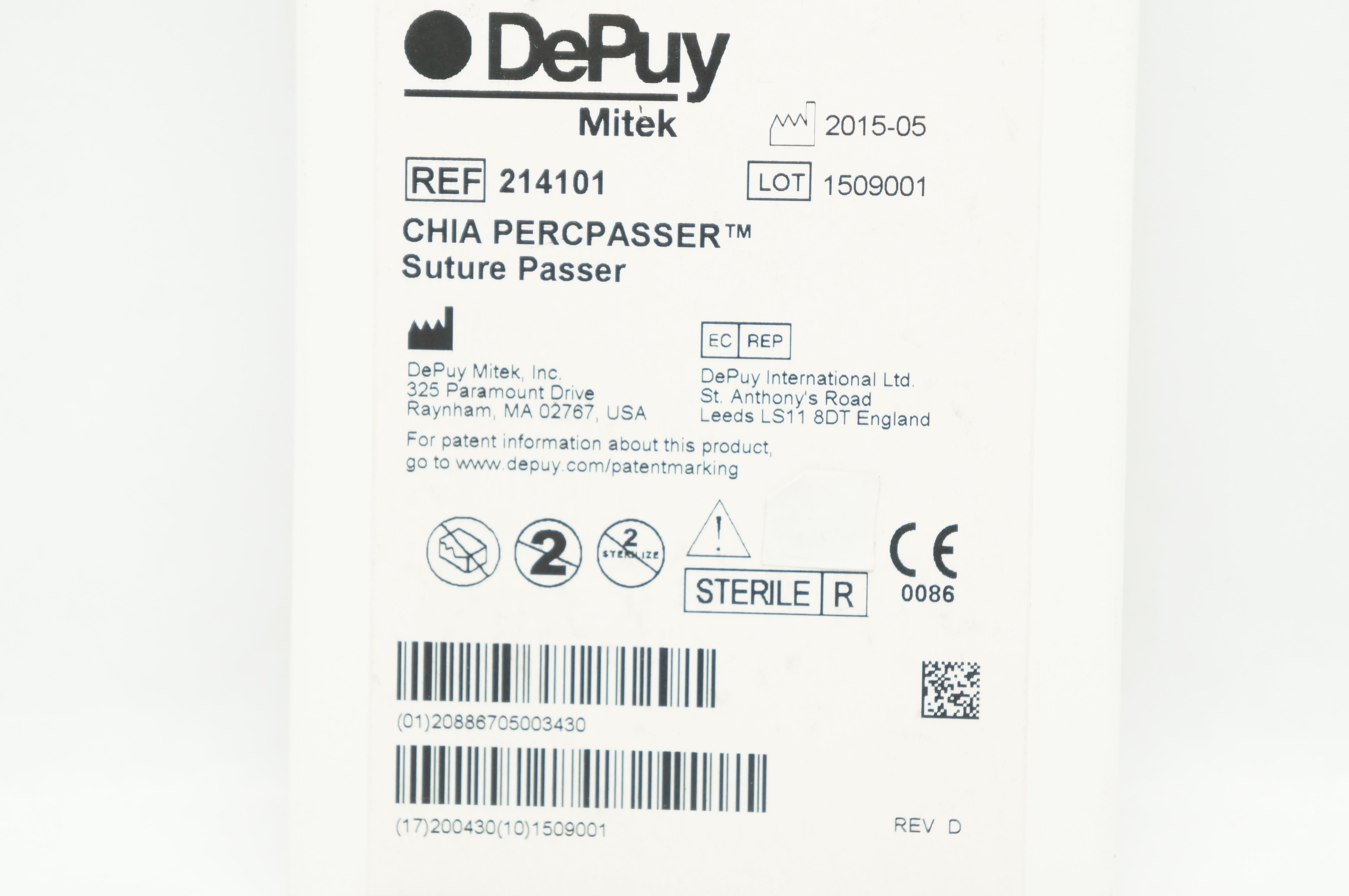 DePuy 214101 Mitek CHIA PERCPASSER Suture Passer