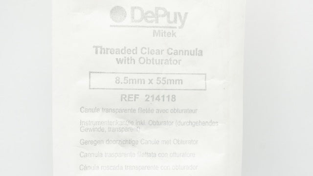 - DePuy 214118 Mitek Threaded Clear Cannula with Obturator 8.5mm x 55mm (x)