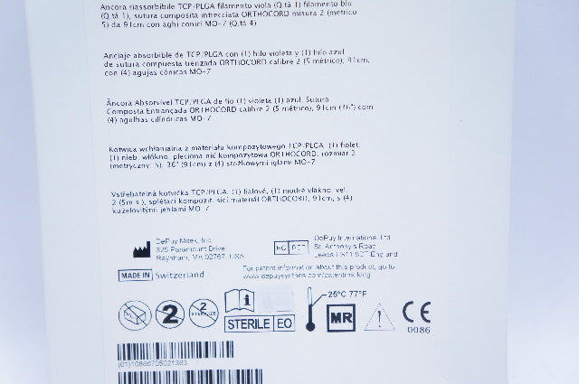 TCP/PLGA Absorbable Anchor (1) Violet (1) Blue Strand, Size 2 (5 Metric) Orthocord Braided Composite Suture, 36inch (91cm) with (4) MO-7 Tapered Needles