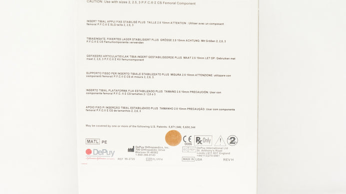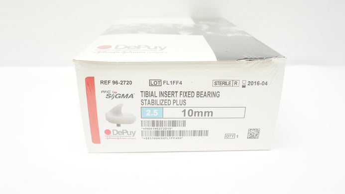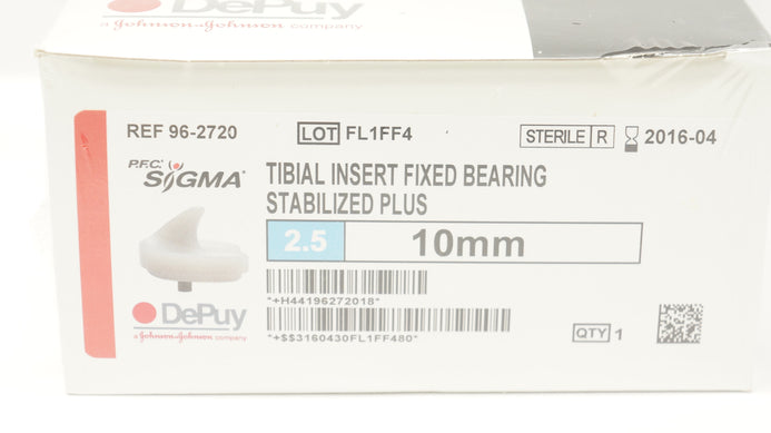 - DePuy 96-2720 Tibial Insert Fixed Bearing Stabilized Plus Size 2.5, 10mm (x)