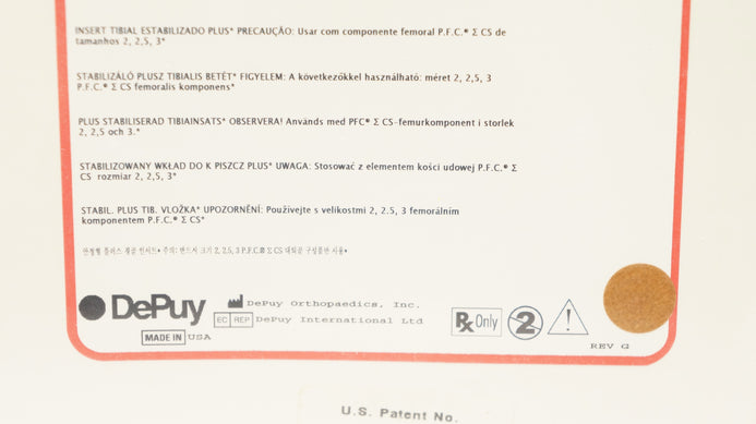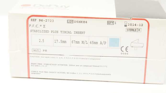 DePuy 96-2723 Stabilized Plus Tibial Insert 17.5mm x 67mmM/L x 45mmA/P(x)