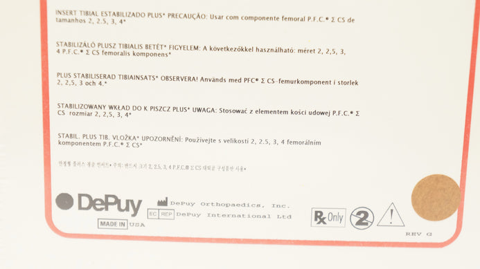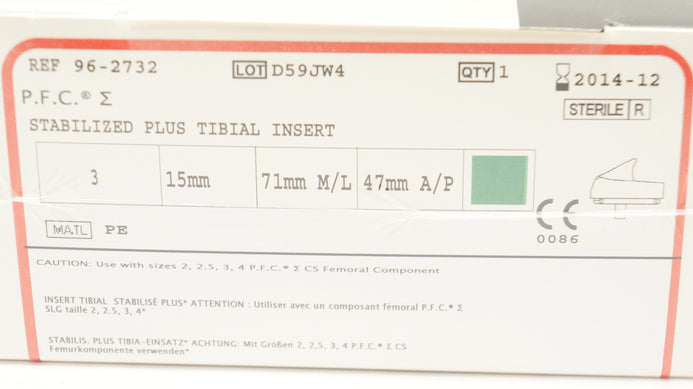 - DePuy 96-2732 Stabilized Plus Tibial Insert Size 3, 15mm x 71mmM/L x 47mmA/P (x)