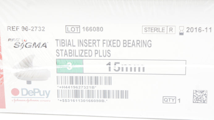 - DePuy 96-2732 Stabilized Plus Tibial Insert Size 3, 15mm x 71mmM/L x 47mmA/P (x)