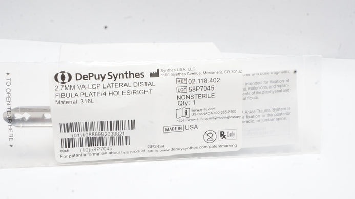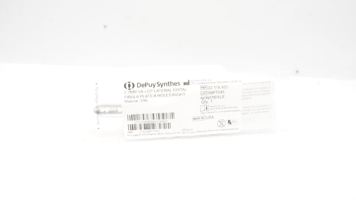DePuy Synthes 02.118.402 2.7mm VA-LCP Lateral Distal Fibula Plate/4 Holes/Right