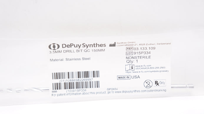 - DePuy Synthes 03.133.109 Stainless Steel 3.5mm Drill Bit QC 150mm