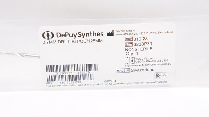 - DePuy Synthes 310.28 2.7mm Drill BIT/QC 125mm