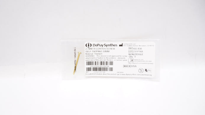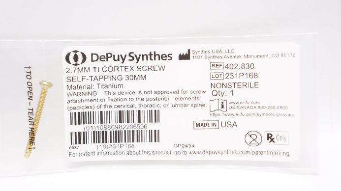 - DePuy Synthes 402.830 2.8mm TI Cortex Screw Self-Tapping 30mm