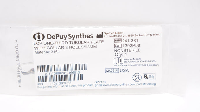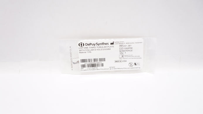 - DePuySynthes 241.381 LCP One-Third Tubular Plate With Collar 8 Holes / 93mm