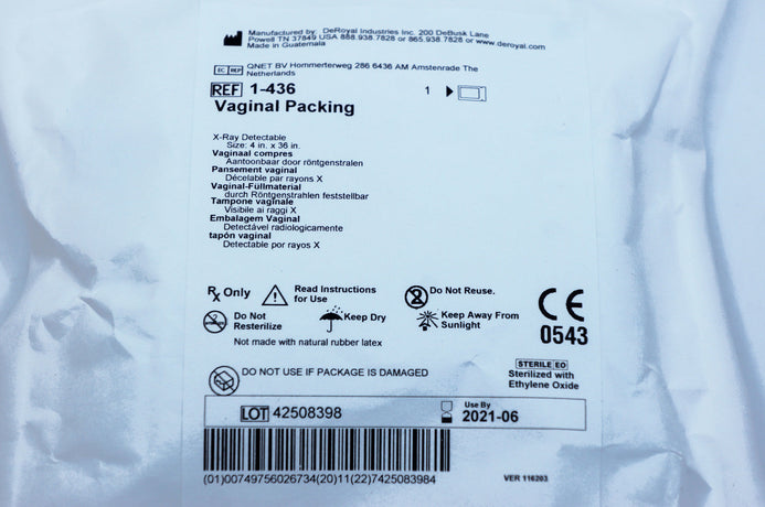 DeRoyal 1-436 Vaginal Packing X-Ray Detectable Size 4in. x 36in.
