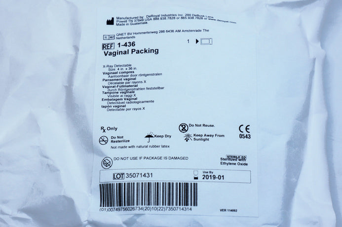 - DeRoyal 1-436 Vaginal Packing X-Ray Detectable, Size 4inch x 36inch (x)