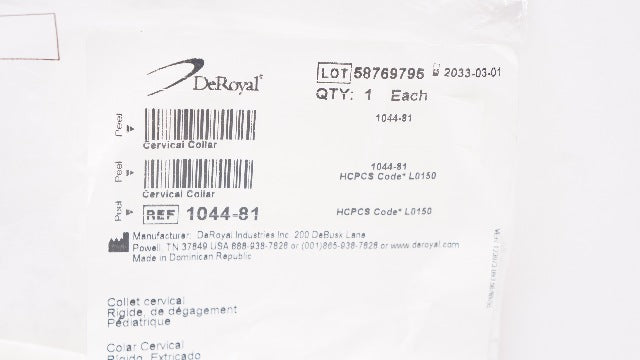 - DeRoyal 1044-81 Pediatric Cervical Collar Rigid Extrication 1.75 x 17.5inch