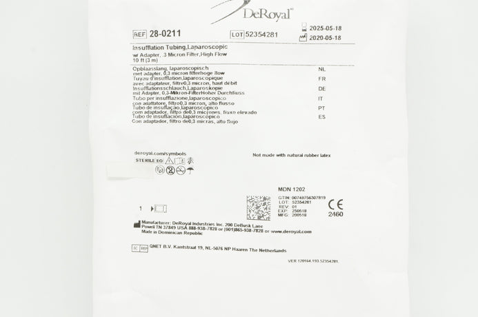 - DeRoyal 28-0211 Insufflation Tubing Laparoscopic w/ Adapter 3 Micron