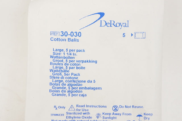- DeRoyal 30-030 Cotton Balls Large, Size 1-1/4inch - Pack of 5