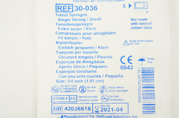 - DeRoyal 30-036 Surgical Tonsil Sponge Cotton, 3/4 inch - Pack of 5