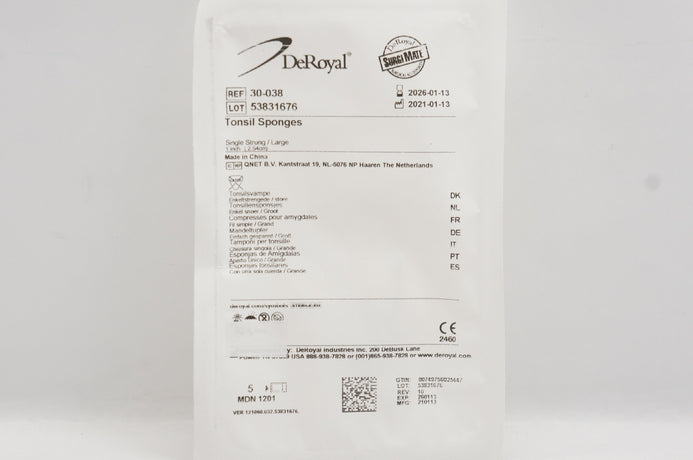 - DeRoyal 30-038 Tonsil Sponges Single Strung/Large 1inch