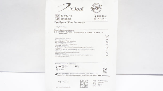 - DeRoyal 30-049-40 Eye Spear/Fine Dissector, X-Ray Detectable - Pack of 10