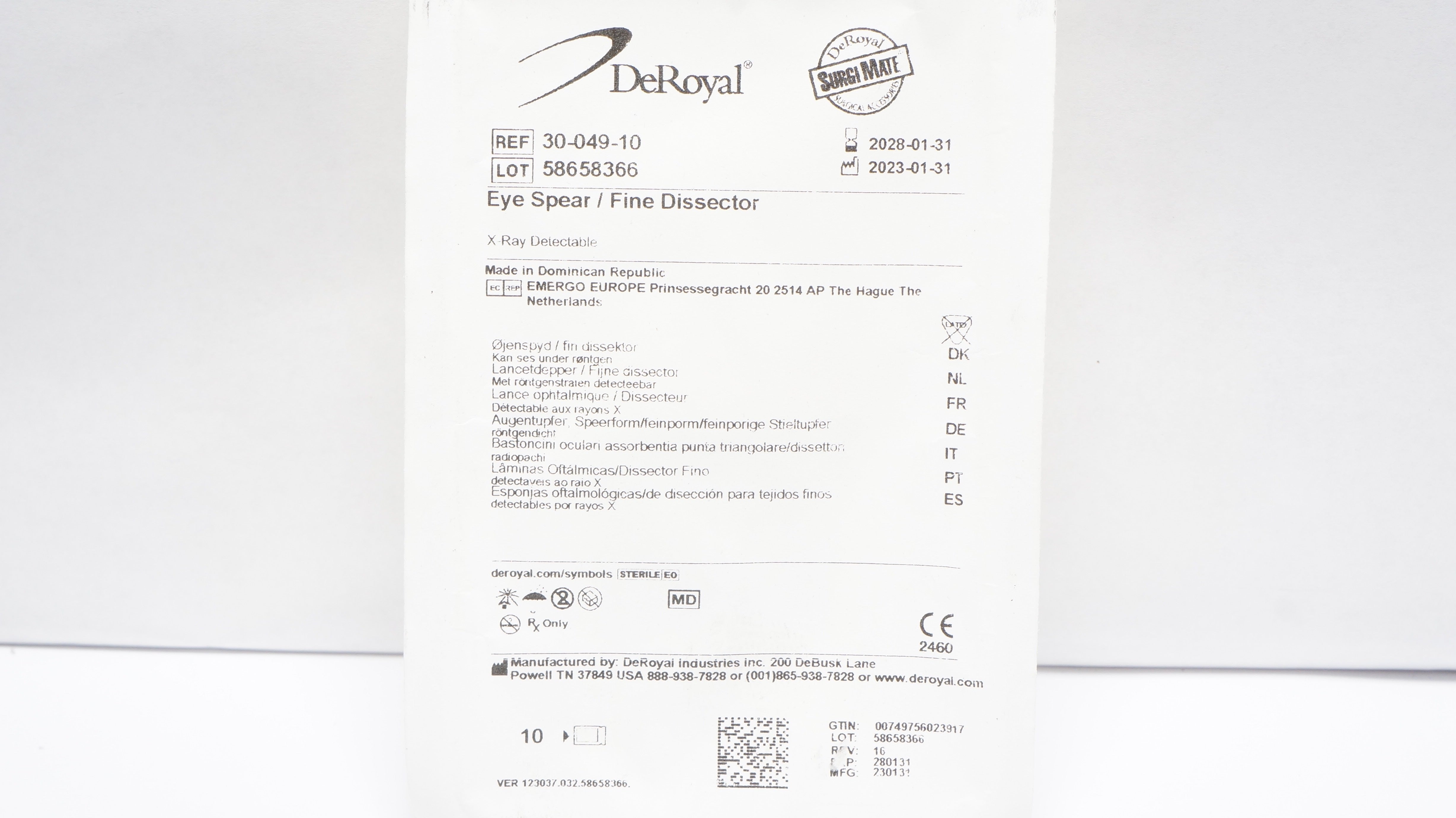 DeRoyal 30-049-40 Eye Spear/Fine Dissector, X-Ray Detectable