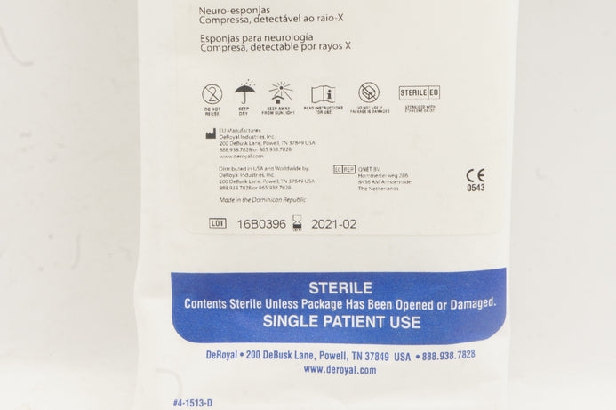 DeRoyal 30-054 Neuro Sponge 1/2inch x 1/2inch