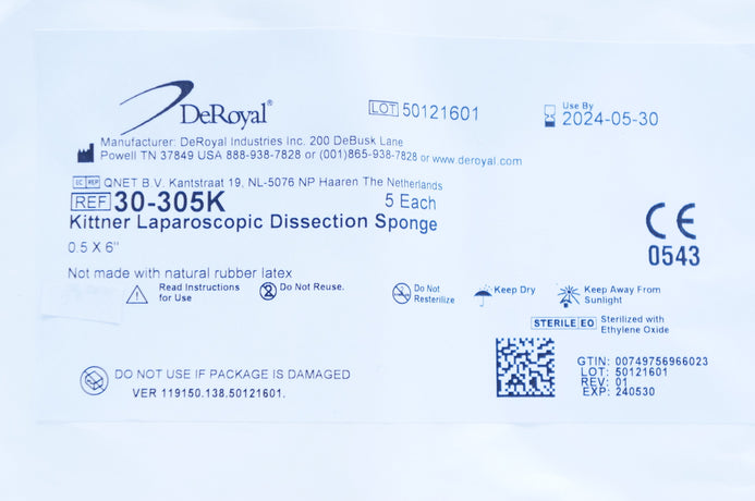 - DeRoyal 30-305K Kittner Laparoscopic Dissection Sponge 0.5 x 6 inch Pack of 5
