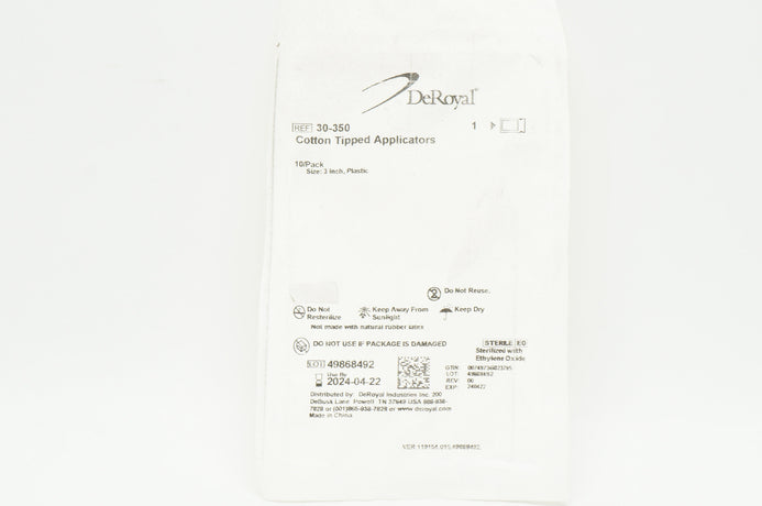 - DeRoyal 30-350 Cotton Tipped Applicators 3 inch Plastic